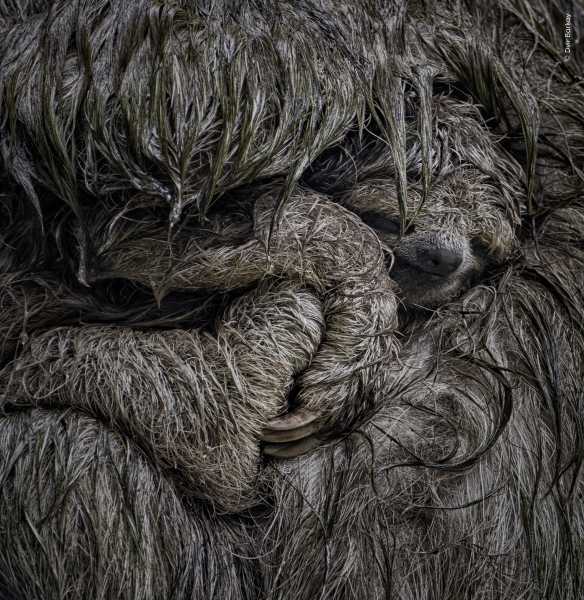 Dvir Barkay’s “Hold Me Tightly” captures a brown-throated three-toed sloth parent cradling its offspring to shield it against the rain.(Image credit: Dvir Barkay / Wildlife Photographer of the Year)
