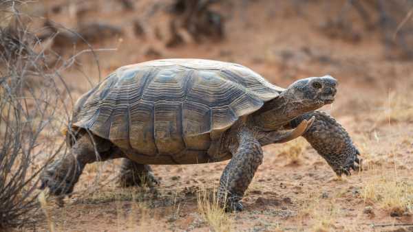 The desert tortoise (Gopherus agassizii) has wide feet that helps it walk across the sand.