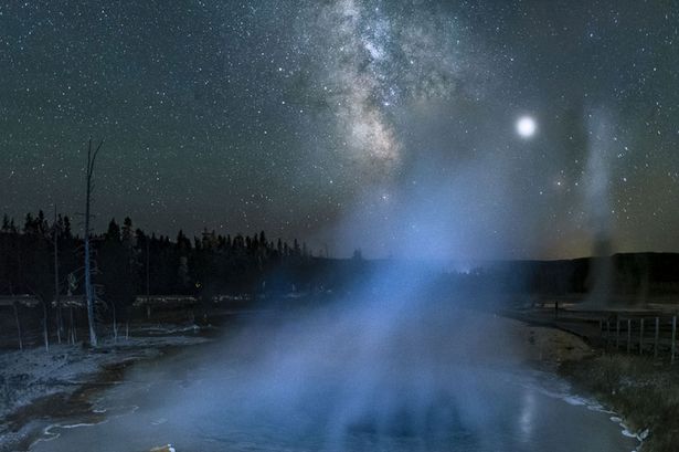 The stunning photo shows the Milky Way in the skies of a spring in Yellowstone National Park