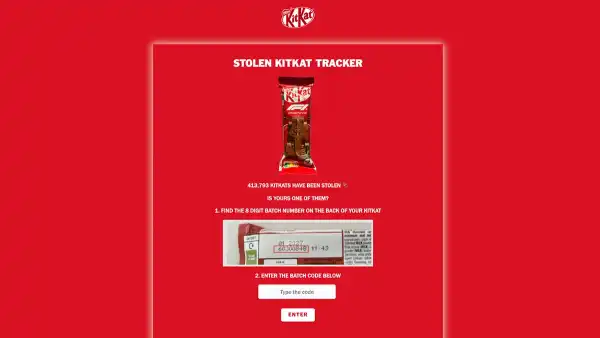 “Therefore, we have developed a Stolen KitKat Tracker, allowing you to check if your KitKat originates from the missing batch.”