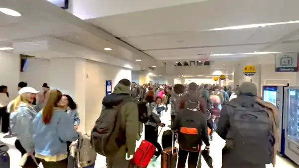 Footage captured at Philadelphia International Airport early Thursday morning reveals hundreds of travelers awaiting passage through security checkpoints via elevators and escalators.